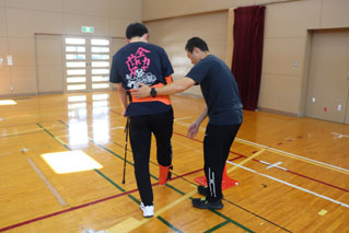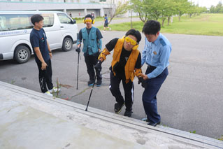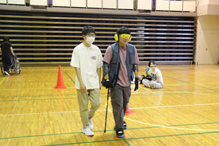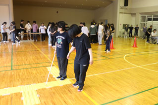 サポートされる側、する側になり相手の立場になって考え、サポートをする方法を学んでいただきました。体験を終えた生徒からは「視覚障がい者体験では、真っ暗で周りが見えず不安だったが、サポートをしてくれる人の声で安心でき、声掛けは大事なんだと実感しました。サポートが必要な人が周りにいた際は、優しく声掛けをしたいと思います」とお話があり、今回の体験を通して気付いたことを今後、活かしていただけたらと思います。