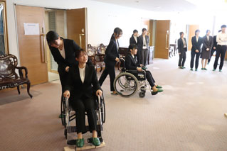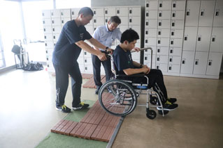 高齢者、障がい者のサポートを学んでいただくため、青森県警察学校で車いす体験、高齢者.視覚障がい者.片マヒの疑似体験を実施しました。