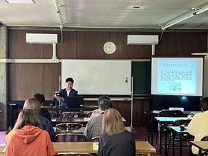 青森大学 柏谷ゼミ参加学生へ「ボランティア活動への参加について」「ボランティア活動に関する大学生・短大生・高校生の意識調査から見えてきたこと」について紹介しました。参加者からは「ボランティアのハードルが高いと感じてしまう学生もいる。児童関係のボランティアについては、例えば教育関係・保育関係の学部にターゲットを絞ってチラシを配布するなど募集方法を変えてみたらいいのでは?」「学生ポイント達成者に1,000円分ではなく5,000円分の図書カードにしたらもっと参加者が増えると思う。」「若者はSNSで情報を見る事が多いと思う。ボランティアでも、ボランティアに関係がないことでも、まずは、ボランティアセンターを知ってもらう為に何かSNSで発信してみてもよいのでは?」など様々な意見がありました。学生の柔軟な意見や感想を聞くことが出来て、今後のボランティアセンター運営においてとても参考となりました!